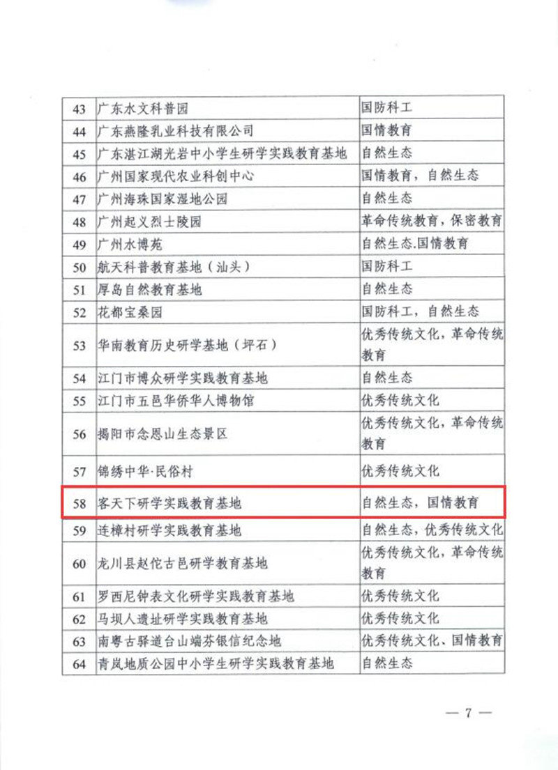 2020年7月,省教育厅评定河源客天下为“省级中小学生研学实践教育基地”,为源城区唯一一家省级研学实践教育基地。